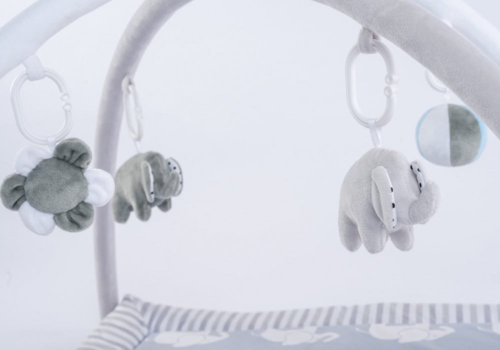 تتضمن مفرش اللعب ألعابًا وخشخيشات تعمل على تطوير المهارات السمعية والمعرفية لطفلك