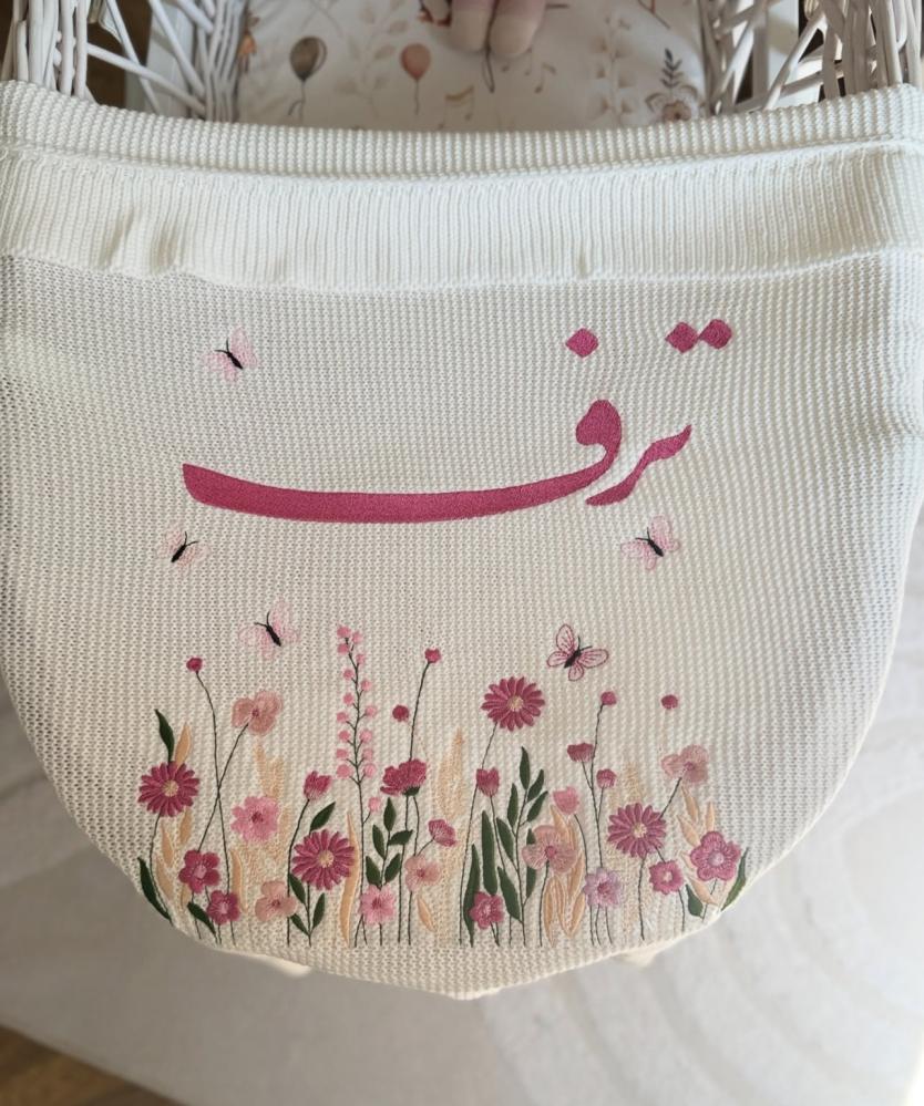 - كوفلة مهاد مواليد قطن بتطريز الاسم