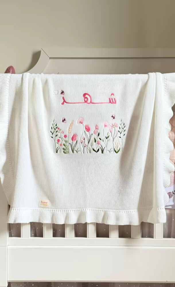 - ميزي طفلك بإقتناء هذه البطانية لطفلك المطرزة بالاسم ليظهر صغيرك بإطلالة مميزة وفريدة