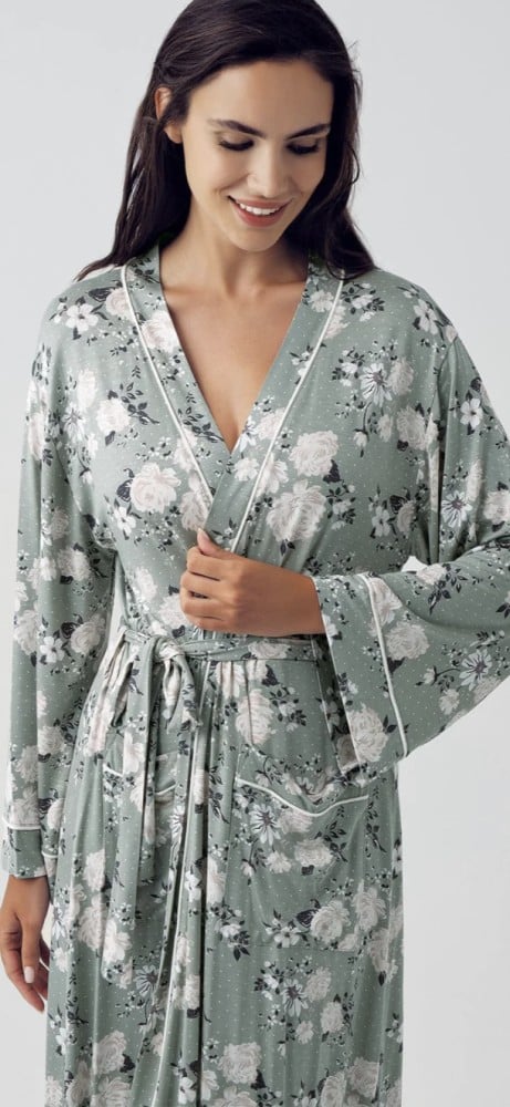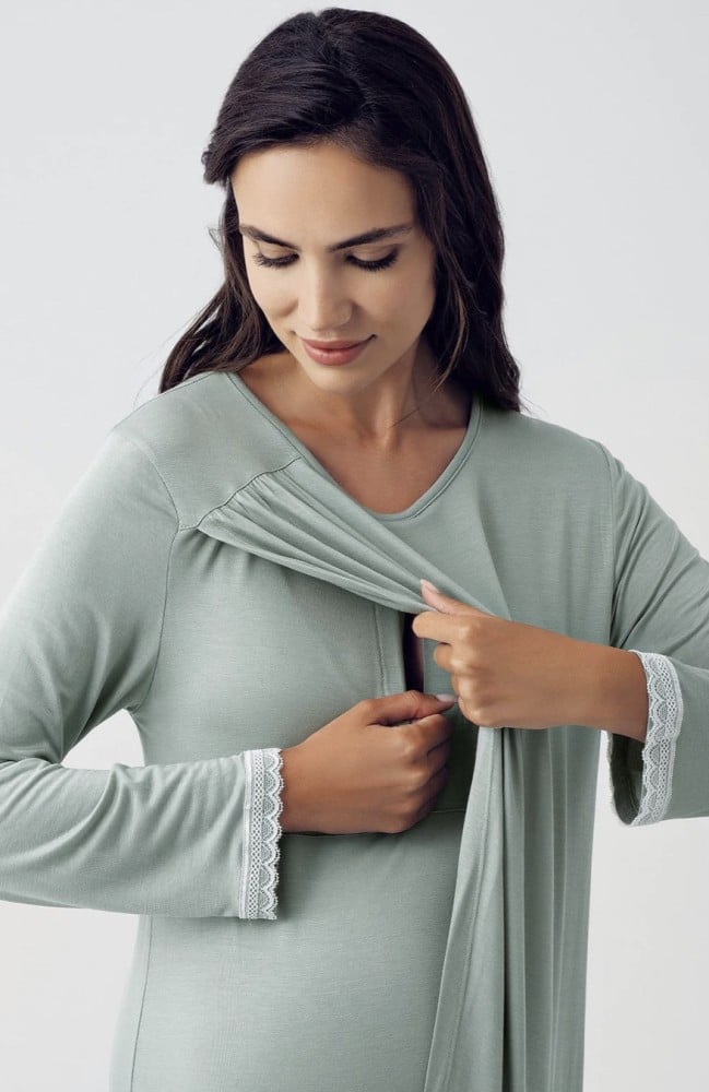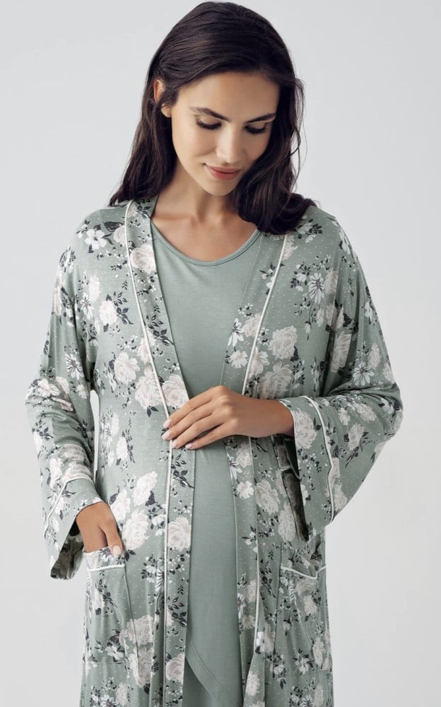 مجموعة بجامة هذه من ثلاث قطع التركية ، حيث توفر لكِ خيارًا مثاليًا في فترة الحمل و ما بعد الولادة , يتميز الطقم مطاط الخصر المرن , كلاسيك اللون , يتكون من بلوزة لطيفة قطن باكمام طويلة مع بنطال مريح و حزام خارجي