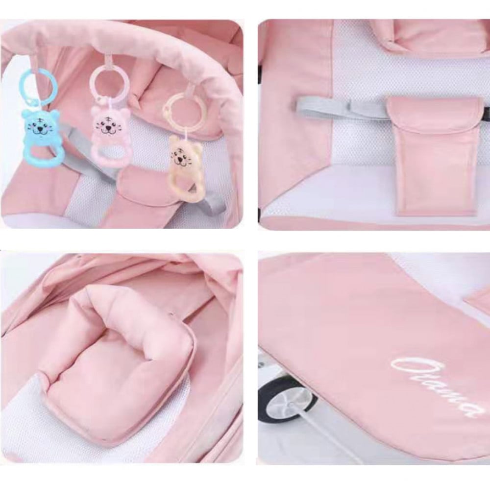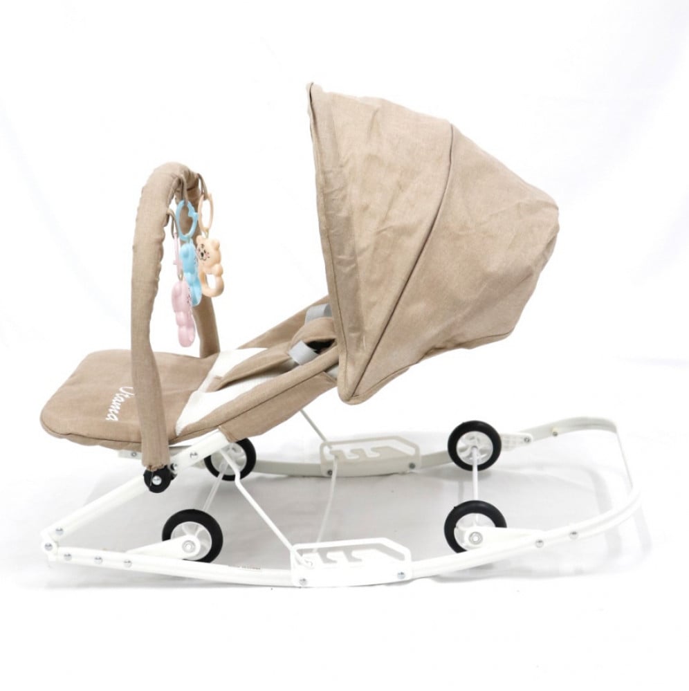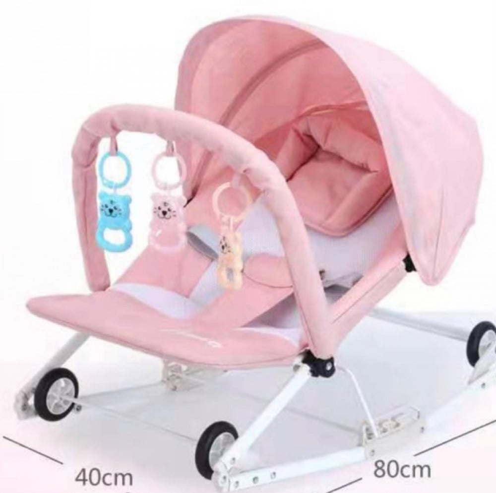 كرسي هزاز قماشي للرضع مع العاب معلقة وعجلات دوارة