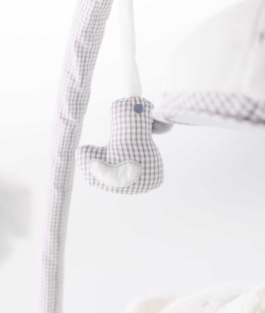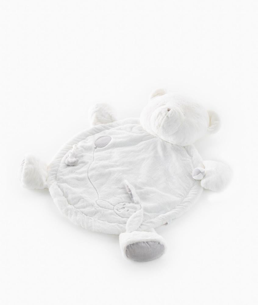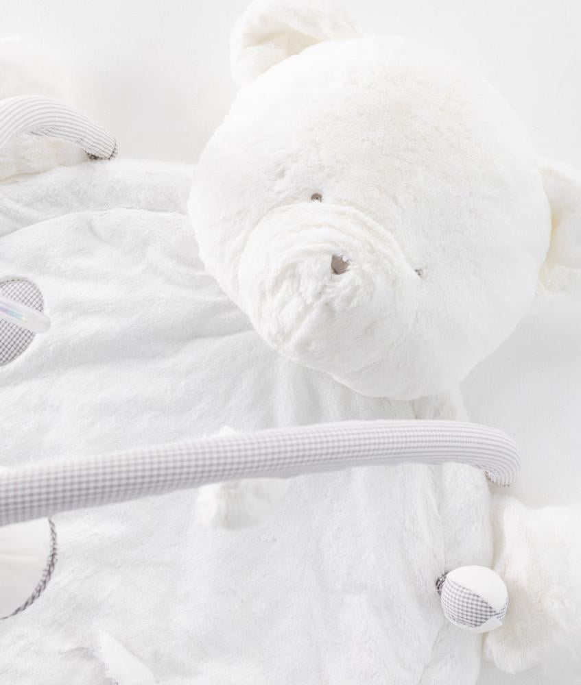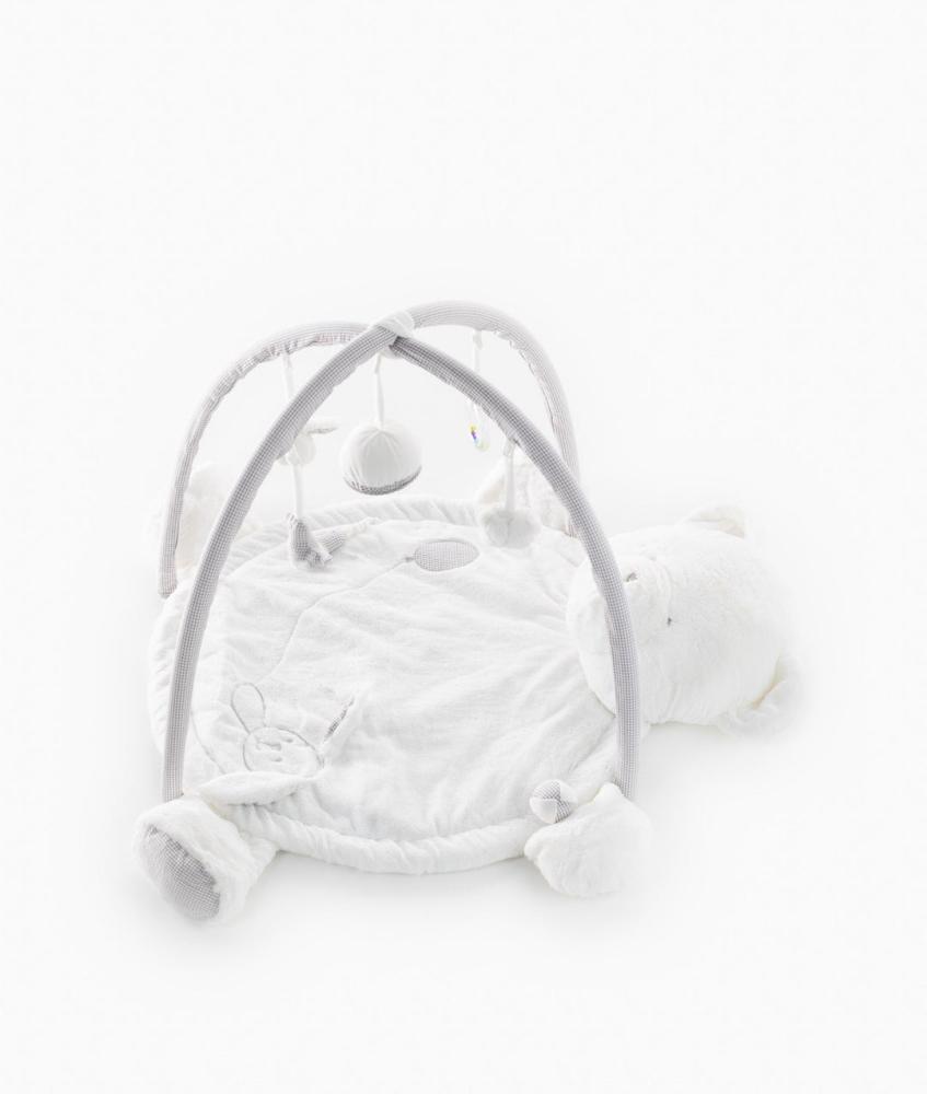 بساط لعب للأطفال يمكن استخدامه لفترة طويلة، مليء بالمحفزات للأطفال. يمكن للطفل الاستلقاء عليها واستكشاف المناطق المحيطة بها، حيث أن سطحها ناعم ومدلل. تحتوي حصيرة اللعب هذه على 5 ألعاب معلقة مختلفة تعزز تطوير المهارات الحركية: مرآة، وطوق مطرز، وبطة تصدر صوتًا، وأرنبًا حسيًا، ورأس دب خشخشة. يحتوي سطح الاستلقاء على المزيد من الألعاب: كرة قطيفة تهتز بخيط سحب، وموسيقى تعزف البطة، وآذان أرنب حفيف. يُستخدم رأس الدبدوب الكبير كوسادة داعمة لرقبة الطفل، وكذلك كوسيلة لتقوية الكتف (من خلال وضع الطفل على الوسادة خارج بساط اللعب، بينما يكون مواجهًا للألعاب. في هذا الوضع، تخلق الألعاب التحفيز وتشجع على قضاء وقت طويل على البطن). من خلال فصل قوس التعليق، يمكن أن تصبح حصيرة اللعب سطحًا مستلقيًا أو سجادة مريحة ومحبوبة، والتي تعمل أيضًا كخلفية مثالية للصور لتوثيق الأشهر الأولى من حياة طفلك! هذا المنتج الرائع مناسب منذ الولادة وحتى 18 شهرًا على الأقل.