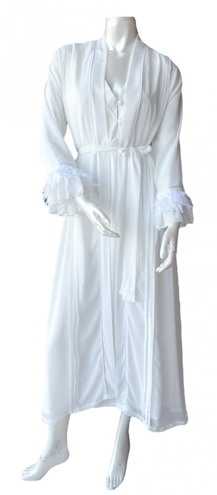 روب نفاس اكمام ريش للاستقبال بتصميم ناعم لون الابيض
