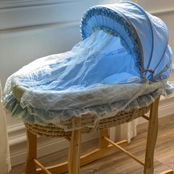 ◉ مهد سلة موسى مزود بمظلة مدمج معها ناموسية تغطي كامل السرير لتحمي طفلك من الحشرات
