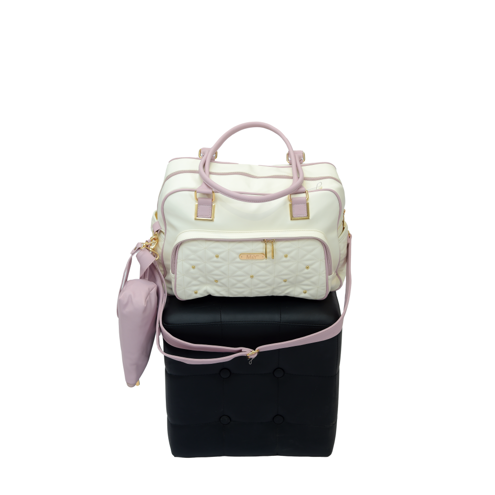 حقيبة تغيير جلد صناعي باللون الابيض من مايورال، . ناعم ولكنه متين، ويحتوي على جيب خارجي مكشكش للإغلاق ورقعة شعار بالأعلى، وكلاهما مصنوع من قماش ناعم بتأثير القماش للحصول على لمسة نهائية متعددة الأنسجة مثيرة للاهتمام. يمكن حمل هذه الحقيبة متعددة الاستخدامات بحزام الكتف القابل للفصل، أو تخزينها على عربة الأطفال باستخدام أحزمة العربات، أو حملها بمقابض الحمل. مبطنة بنسيج قطني مضلع ناعم، وتحتوي على جيوب داخلية وخارجية سهلة الاستخدام لتخزين مستلزمات الطفل الأساسية.